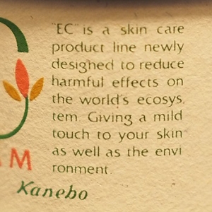 In 1991, thirteen years before the idea arrived in Japan, Kanebo Cosmetics launched a brand that developed “ecological cosmetics that are friendly to both your skin and the environment.” The brand, Kanebo EC, was an abbreviation of Ecological Cosmetics, which also took on other meanings: Earth Clean and Extra Calm.